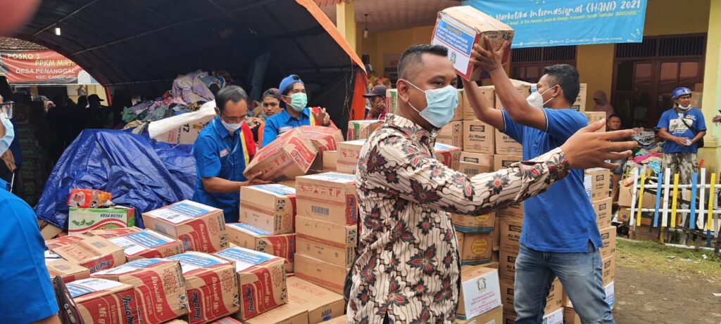 Bergerak cepat, Indomaret memberikan bantuan korban dampak bencana erupsi Gunung Semeru di Posko Desa Penanggah, Kecamatan Candipuro, Senin (6/12). Bantuan berupa 60 karton mie instan, 130 karton air mineral, 600 roti, 15.000  masker medis diserahkan Branch Manager PT Indomarco Prismatama Jember, Mulyono, kepada Wakil Bupati Lumajang, Ir. Hj. Indah Amperawati. Selain itu, para warga terdampak erupsi Semeru disediakan tempat pengungsian di tenda pleton Indomaret yang menampung 40 orang sebanyak 3 buah.