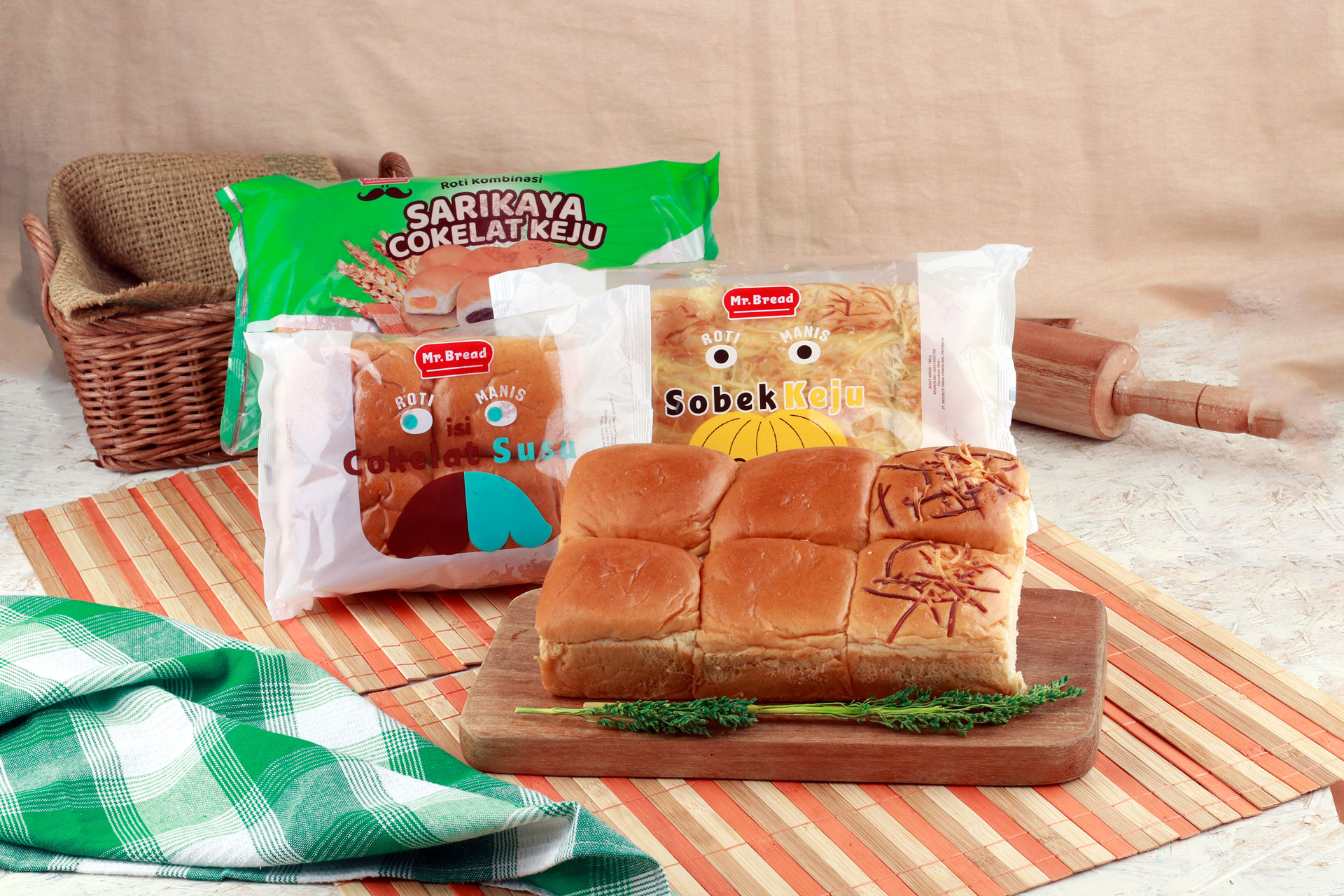 Mr. Bread hadir dengan berbagai macam varian roti manis, roti sandwich, dan roti tawar yang nikmat dan cocok dikonsumsi setiap hari.