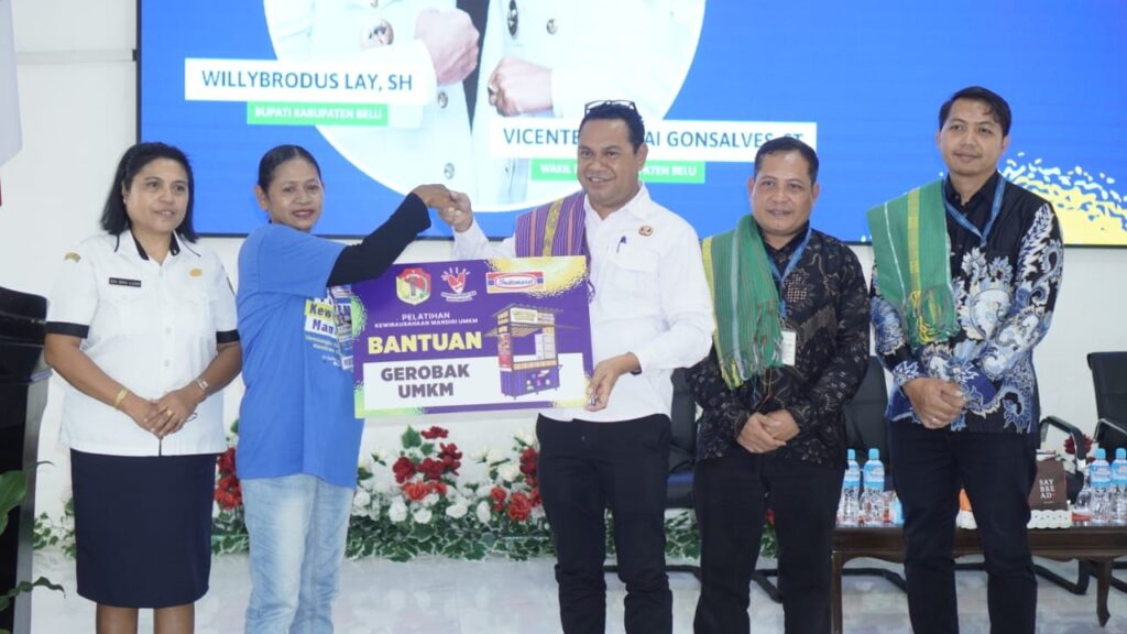 Pelatihan Kewirausahaan Mandiri UMKM di Gedung Betelalenok, Rumah Jabatan Bupati Belu, Kabupaten Belu, Nusa Tenggara Timur, Rabu (5/11/2025) dihadiri Wakil Bupati Belu, Vicente Hornai Gonsalves, S.T.,  (ketiga dari kanan) didampingi Deputy Branch Manager Indomaret Cabang Jember, Yeru Juworo  (pertama dari kanan).