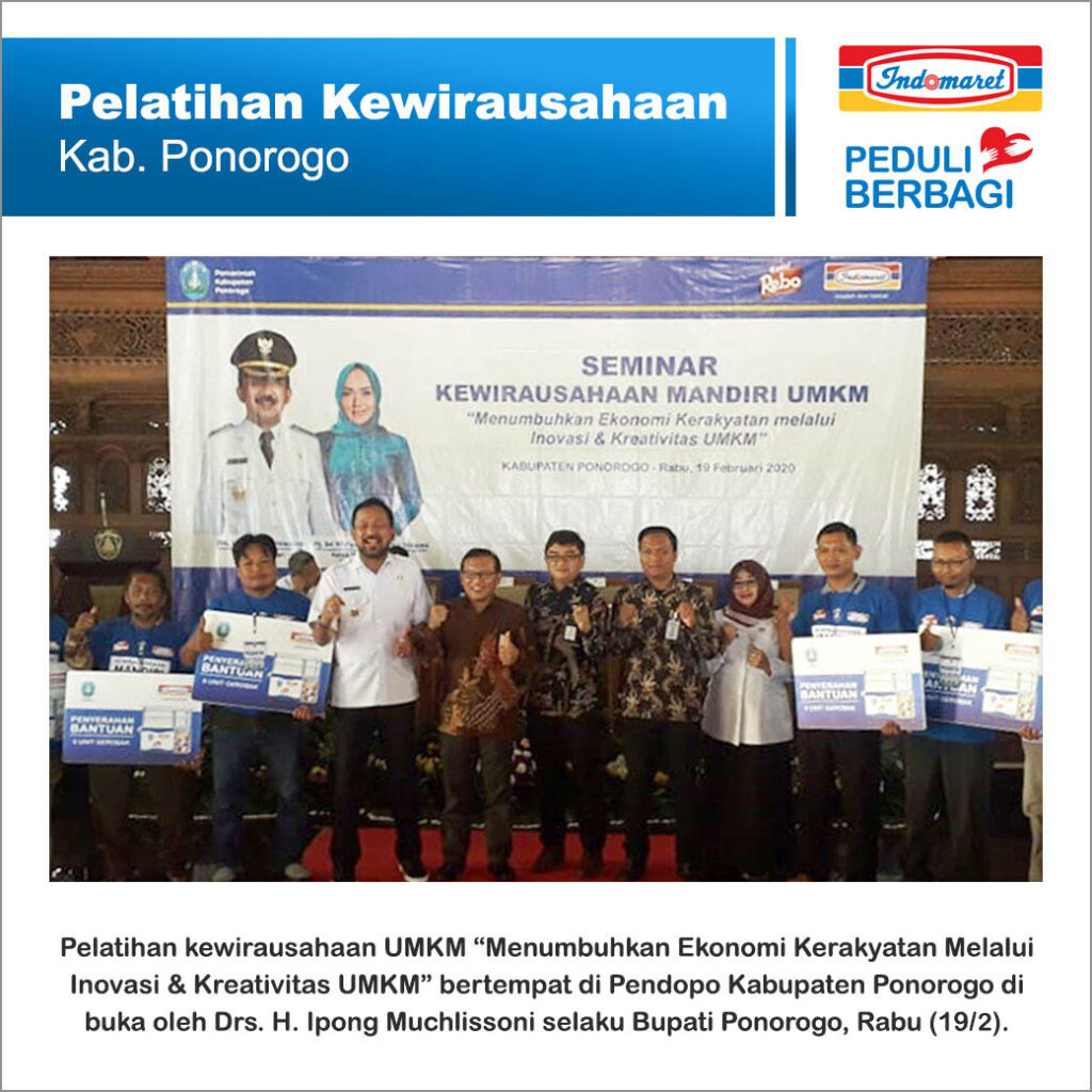 Berkembang bersama-sama mitra UMKM menjadi komitmen Indomaret dan Kuaci Rebo dalam mengembangkan usahanya. Melalui kegiatan pelatihan kewirausahaan yang terus menerus diadakan di berbagai wilayah, Indomaret mengajak dan mendorong pelaku UMKM agar mandiri, mampu meningkatkan daya saing dan kompetisi di pasar global. Pelatihan Kewirausahaan bertajuk “Menumbuhkan Ekonomi Kerakyatan Melalui Inovasi & Kreativitas UMKM” diselenggarakan di Pendopo Kabupaten Ponorogo, oleh Indomaret bekerja sama dengan Pemerintah Kabupaten Ponorogo. Sekitar 100 peserta binaan Pemerintah Kabupaten dan Indomaret antusias mengikuti pelatihan kewirausahaan, dibekali konsep marketing modern, dari mulai mengurus perizinan, produksi, kemasan,komposisi, merek, serifikasi halal barcode. Kendala yang sering menghambat pelaku UMKM yaitu keterbatasan akan standar kompetensi, akses informasi, pemasaran dan infrastruktur. Pasca pelatihan kewirausahaan pelaku UMKM memasuki proses diskusi, pengajuan dan negosiasi produk untuk dipasarkan di Indomaret.