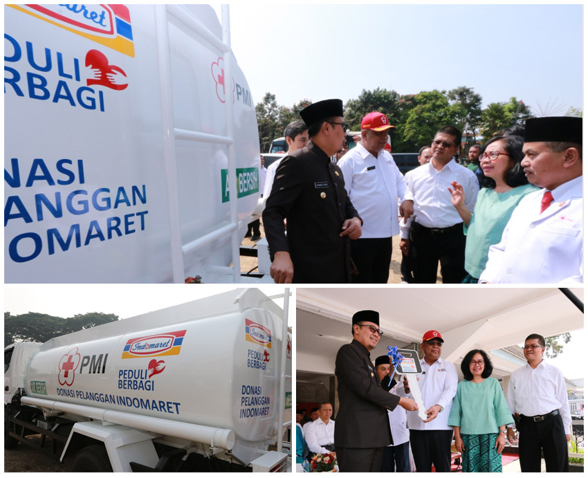 Bantuan mobil tangki air dari penghimpunan donasi pelanggan Indomaret kerja sama dengan PMI 1 November 2017 – 31 Januari 2018 yang terhimpun sebesar Rp 2.489.340.020. Donasi juga dipergunakan untuk pembangunan MCK, pompa air, tangki air di Kabupaten Rembang, program Water, Sanitation dan Hygiene di Kota Salatiga, mobil Ambulans untuk wilayah Kabupaten Cianjur dan mobil tangki air untuk Kota Sukabumi dan satu unit mobil tangki air untuk wilayah Kabupaten Pasuruan.