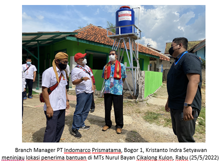 Serah terima bantuan MTs Nurul Bayan dihadiri Branch Manager PT Indomarco Prismatama (Indomaret) Bogor, Kristanto Indra Setyawan, Kepala Bidang Kesehatan Masyarakat Dinas Kesehatan Provinsi Jawa Barat, drg. Marion Siagian, Kepala Divisi Kesehatan dan Sosial (Kesos) PMI Eka Wulan Cahyasari, dan Kepala Seksi Pendidikan Madrasah Kantor Departemen Agama Cianjur, H. Abudul Qodir Aziz, Rabu (25/5/2022) di MTs Nurul Bayan Cikalongkulon, Cianjur.