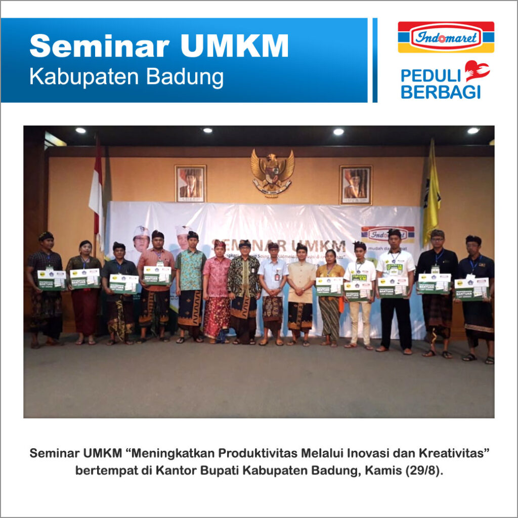 Berkembang bersama-sama mitra UMKM menjadi komitmen Indomaret dan Barco dalam mengembangkan usahanya. Melalui kegiatan seminar yang terus menerus diadakan di berbagai wilayah, Indomaret mengajak dan mendorong pelaku UMKM agar mandiri, mampu meningkatkan daya saing dan kompetisi di pasar global. Seminar bertajuk “Meningkatkan Produktivitas Melalui Inovasi dan Kreativitas” diselenggarakan di Kantor Bupati Kabupaten Badung, oleh Indomaret bekerja sama dengan Pemerintah Kabupaten Badung. Sekitar 150 peserta binaan Pemerintah Kabupaten dan Indomaret antusias mengikuti seminar, dibekali konsep marketing modern, dari mulai mengurus perizinan, produksi, kemasan,komposisi, merek, serifikasi halal barcode. Kendala yang sering menghambat pelaku UMKM yaitu keterbatasan akan standar kompetensi, akses informasi, pemasaran dan infrastruktur. Pasca seminar pelaku UMKM memasuki proses diskusi, pengajuan dan negosiasi produk untuk dipasarkan di Indomaret.
