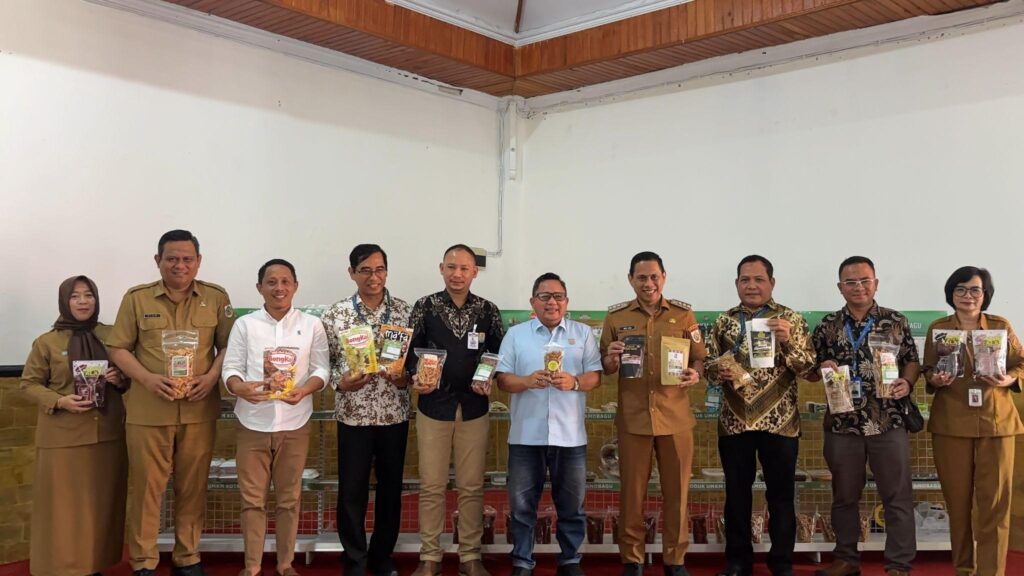 Pelatihan kewirausahaan mandiri UMKM di Aula Rumah Dinas Wali Kota, Kotamobagu, pada Senin (23/6/2025) dihadiri Wali Kota Kotamobagu, dr. Weny Gaib, Sp.M (keempat dari kanan) didampingi Deputy Branch Manager Indomaret Cabang Manado, Robby Hindarto (kelima dari kiri).