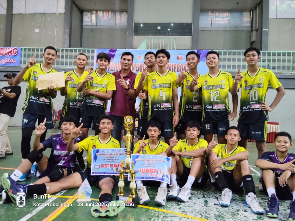 Tim Voli Indomaret U-15 sukses menutup Kejuaraan Bola Voli Semipro Cup Antar Club U-15 dengan manis setelah keluar sebagai juara pertama. Kejuaraan yang digelar pada 23 – 29 Juni 2025 di GOR Mastrip, Kota Probolinggo ini diikuti 36 klub terbaik se-Jawa Timur dan jadi ajang unjuk kemampuan para atlet muda berbakat.