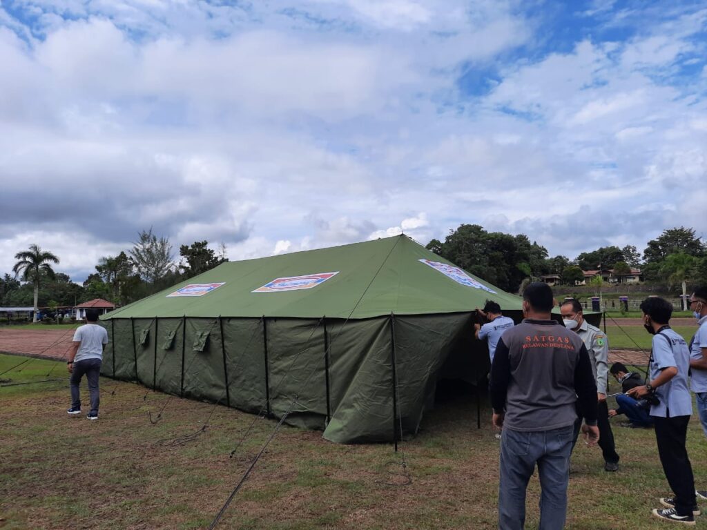 Mengantisipasi gelombang ketiga Covid 19, Indomaret menyerahkan tenda pleton dan masker kepada masyarakat Kabupaten Bengkayang. Bantuan Indomaret diapreasi oleh Bupati dan  Ketua Satgas Covid-19 Kabupaten Bengkayang, Sebastianus Darwis di Kantor Bupati Bengkayang, Senin (18/10).