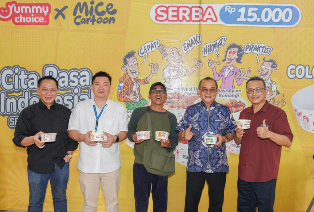 Yummy Choice Indomaret dan MICE Cartoon meluncurkan desain kemasan terbaru untuk varian Bento Cup SERBU dengan mengangkat cerita kehidupan urban. Foto: Dokumentasi Indomaret